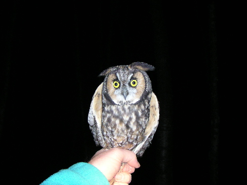 the ratio of hatch year to adult owls is slowly beginnning to drift towards the seasoned, migratory, uber owls. as a result, i am finding more bands on the birds, which is always a fun process.